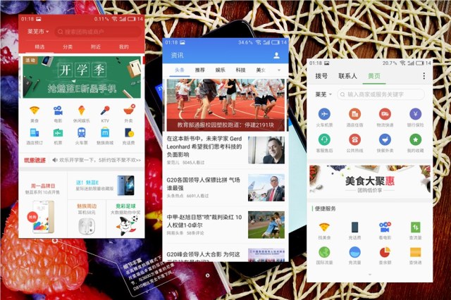 在Flyme5系统中,加入了很多内容资源,其中生活服务功能,内置聚合众多优质商家,可以享受到很多便捷的优惠服务。资讯功能,联合逾 450 家在线资讯媒体打造众多的在线资讯,而且在拨号界面还集成了黄页功能,可以快速进行物流查询、充话费、查余额等便捷功能。