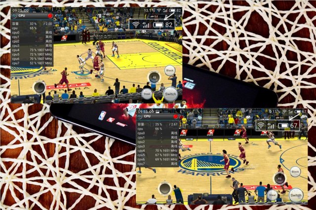 这里还选择了NBA2K16这款对于手机性能要求比较高的游戏再次进行了下测试,经过实际的游戏体验,游戏可以正常运行,不过流畅度并不好,整个游戏过程中大部分时间CPU的四个大核心基本都在满负荷运转,对于这款运行还是有些压力的,如果平时比较喜欢玩这种大型3D游戏的话,建议还是选择配备更高端处理器的其他机型吧。游戏运行30分钟后,手机电量从82%降为67%,耗电量为15%,手机正面的最高温度为44度左右,处于手机摄像头左侧区域,手机背面最高温度为40度左右。